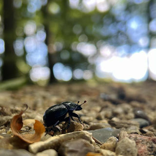 Her ses små glimt fra diverse ture i skoven, ofte fotograferet på højde med tudse, skarnbassen, edderkopper, mos og svampe.