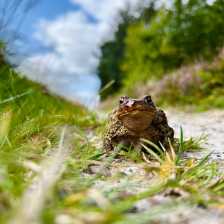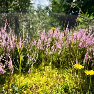 Søen er omringet af skov, skrænter med lyng og enebær og brombær.